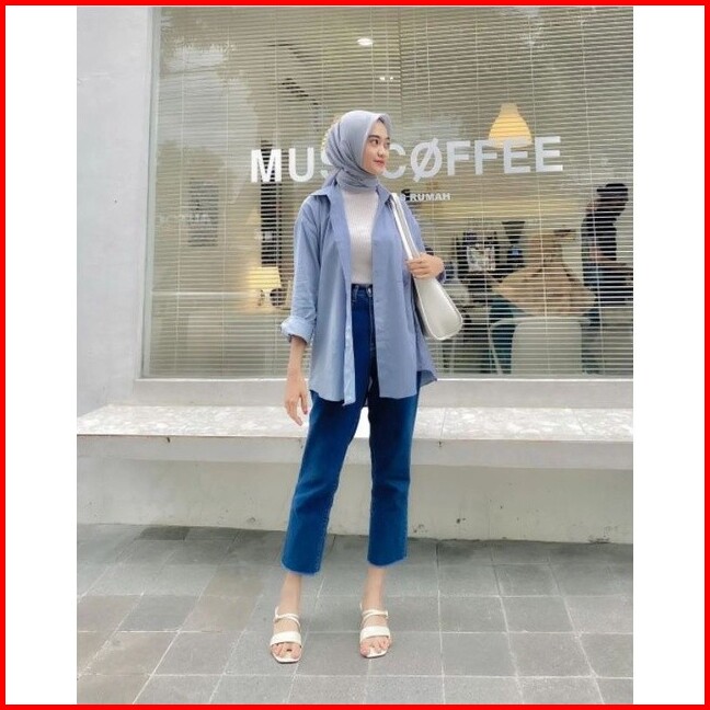 Kemeja Linen Oversize Shirt Polos Pocket Basic Wanita Premium