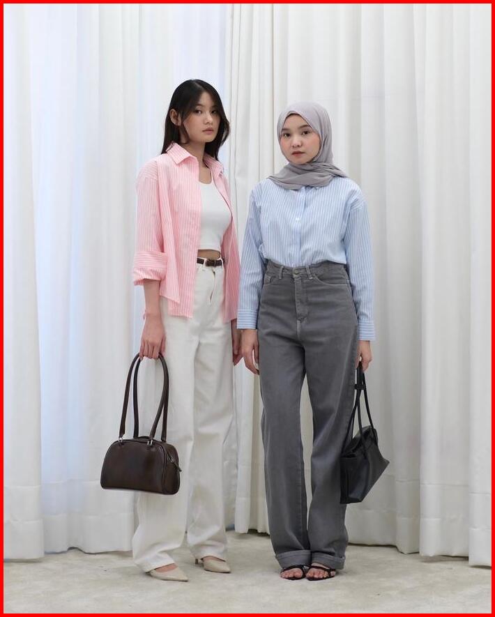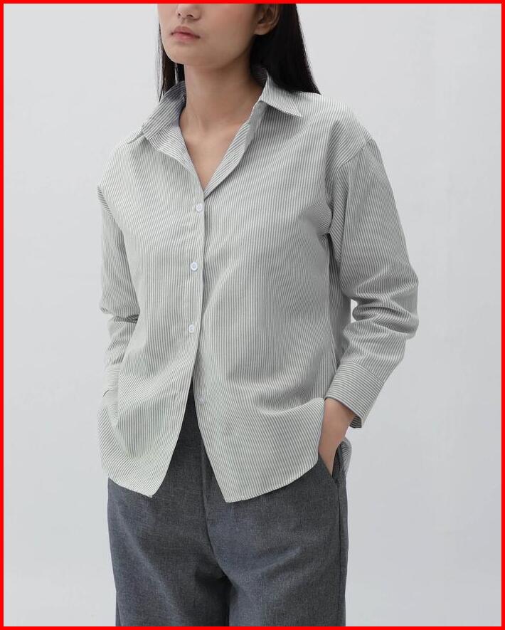 Kemeja Panjang Salur Wanita Hanni Striped Shirt Hulm