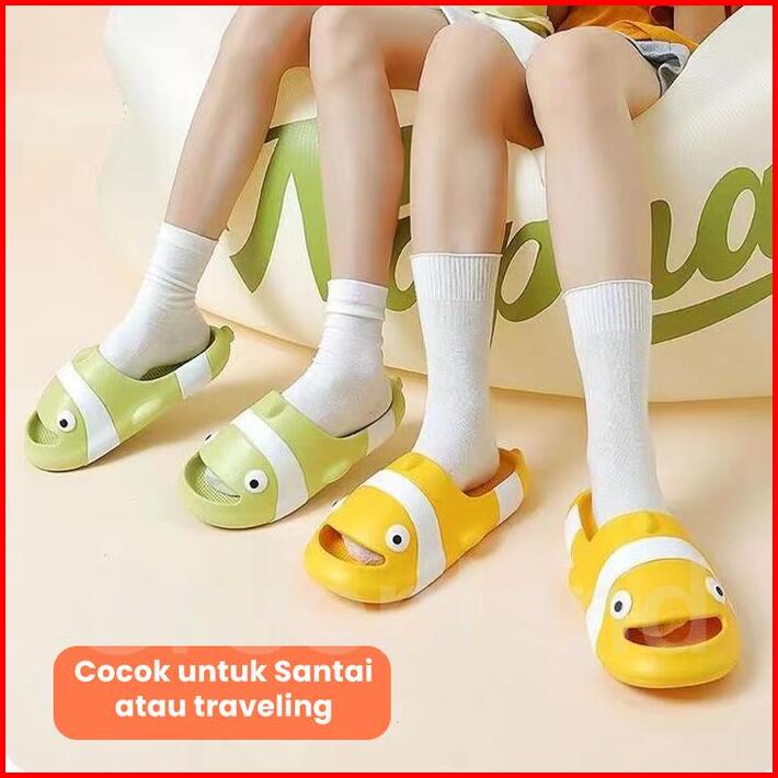 Shoes Greenland Sandal Slop Ikan Pria Wanita Sandal Slip On Wanita Karakter Ikan Lucu Sendal Anak Cewek Cowo Anti Slip R