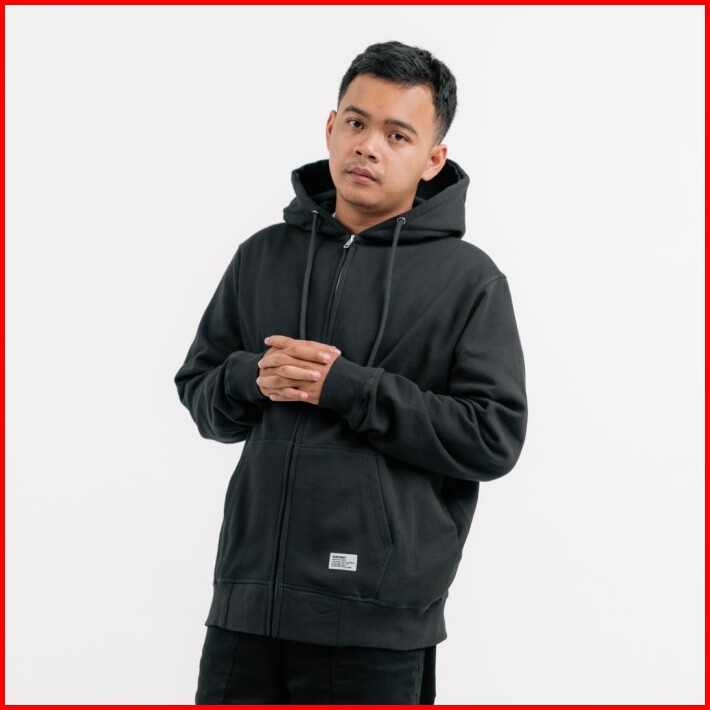 Screamous Sweater Pria Basic Pullover Zipper Hoodie Sean Black