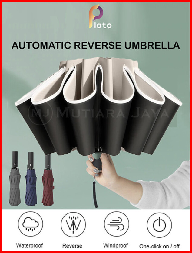 Plato Payung Lipat Otomatis Reverse Automatic Umbrella Terbalik Mobil