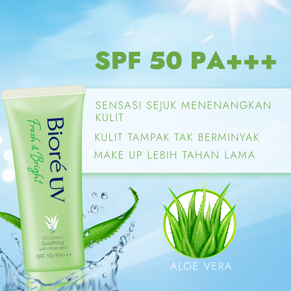 Biore UV Fresh & Bright Oil Control Soothing Aloe Skin Care Sunscreen Tabir Surya Sun Screen Sunblock Cream SPF 50 PA+++