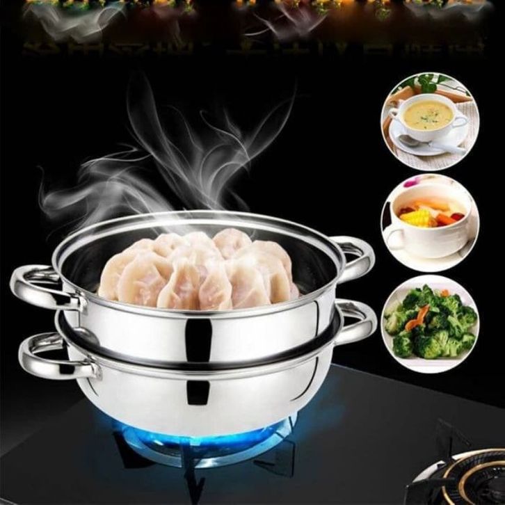 Panci Steamer Stainless Kukus Siomay 2 Susun Tutup Kaca Panci Set Anti Lengket Multifungsi Panci High Quality Terlaris