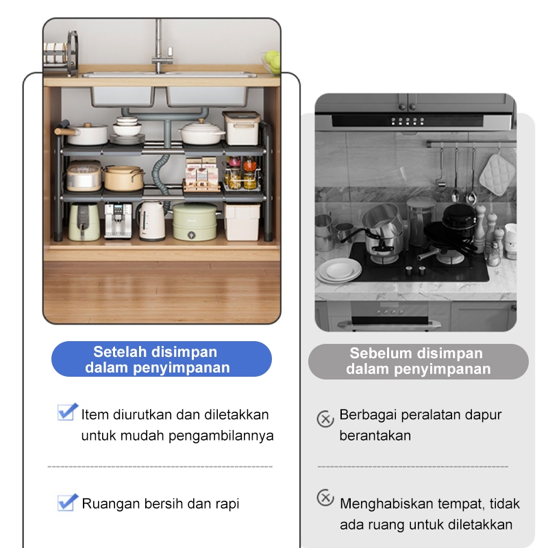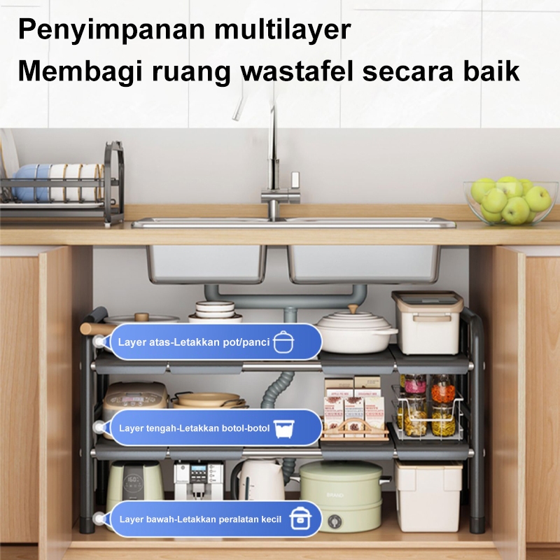 RAK BAWAH WASTAFEL RAK PANCI SUSUN SERBAGUNA RAK DAPUR STAINLESS ANTI RAYAP BEST SELLER
