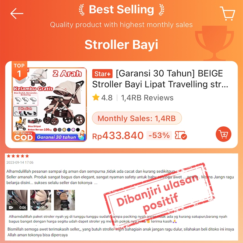 [GARANSI 30 TAHUN] BEIGE STROLLER BAYI LIPAT TRAVELLING STROLLER BABY 2 ARAH BEBAN BERAPA 100KG