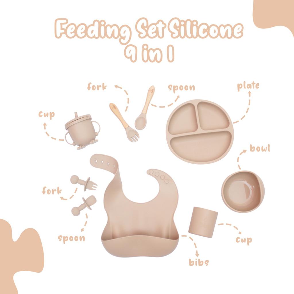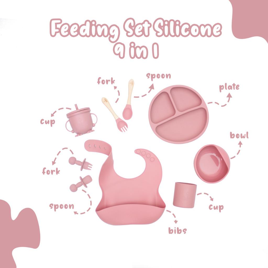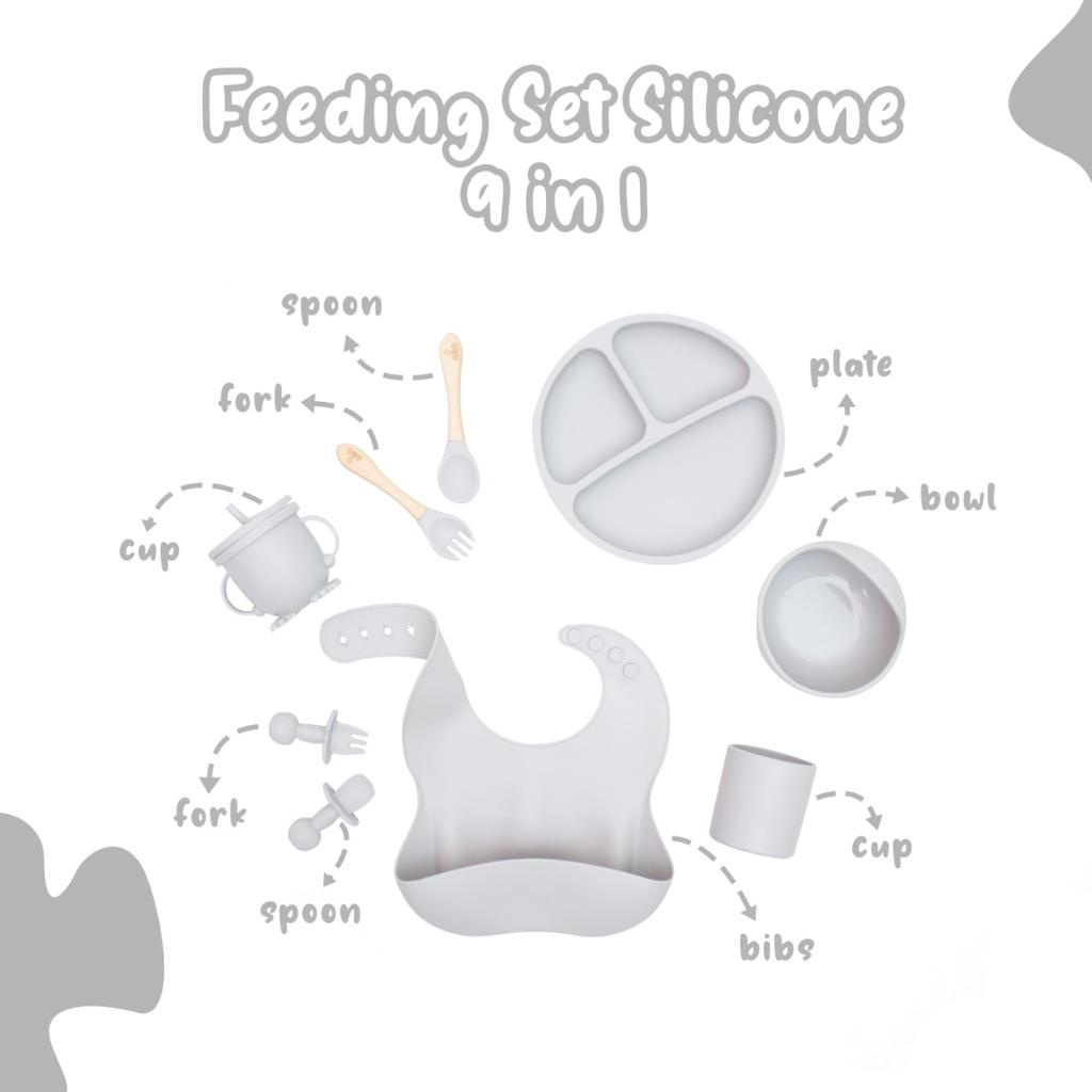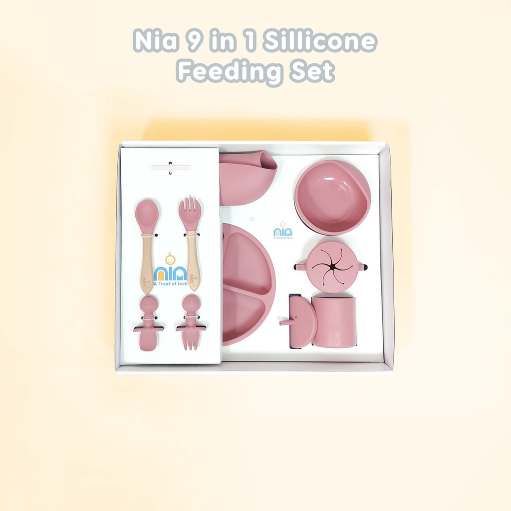 TEMPAT MAKAN BAYI SILICONE/FEEDING SET NIA 9IN1 SILICONE/PERLENGKAPAN MAKAN BAYI