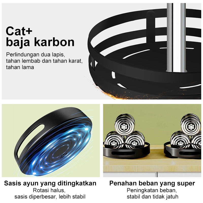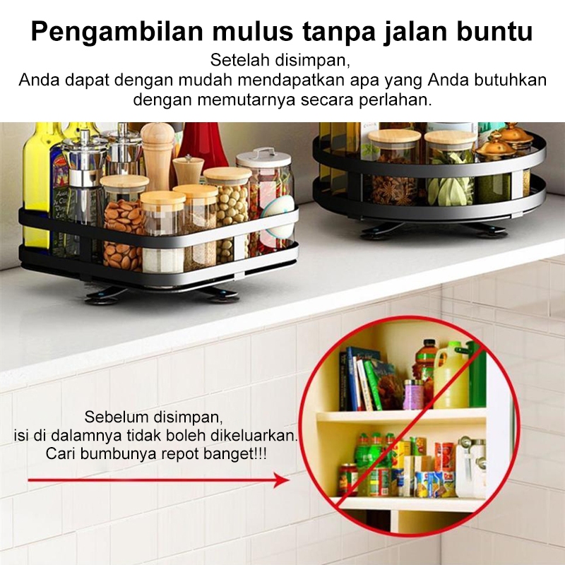 RAK BUMBU PUTAR BERPUTAR 360 DERAJAT RAK BUMBU DAPUR 3 SUSUN SPICE RACK RAK DAPUR STAINLESS