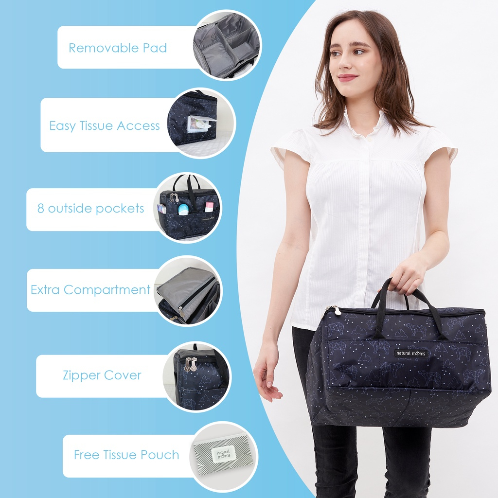 NATURAL MOMS CADDY BAG WATERPROOF FABRIC / CADDY BAG WITH REMOVABLE COVER / DIAPER BAG
