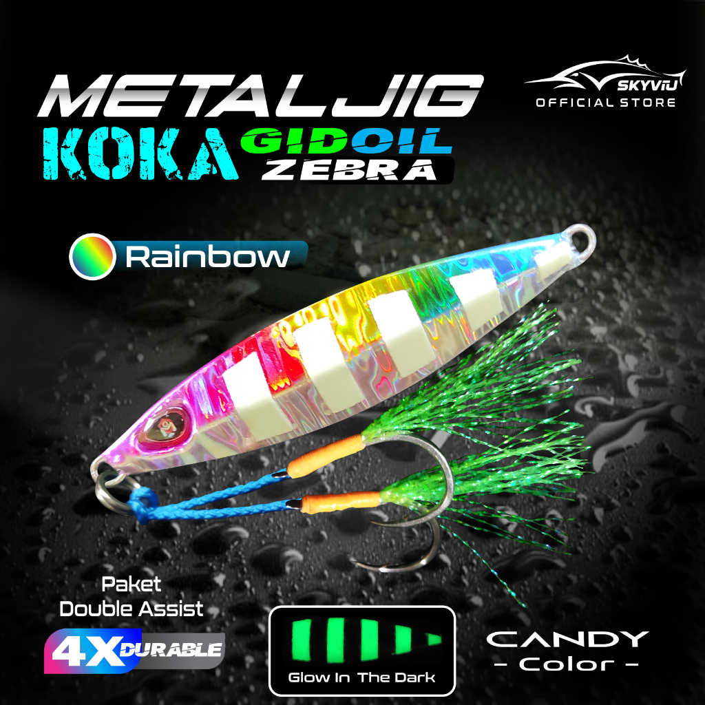 UMPAN METAL JIG 40 GRAM SKYVIU KOKA HOLOGRAM MINYAK 40GR ZEBRA GID GLOW IN THE DARK + DOUBLE ASSIST HOOK JIG 40GRAM META
