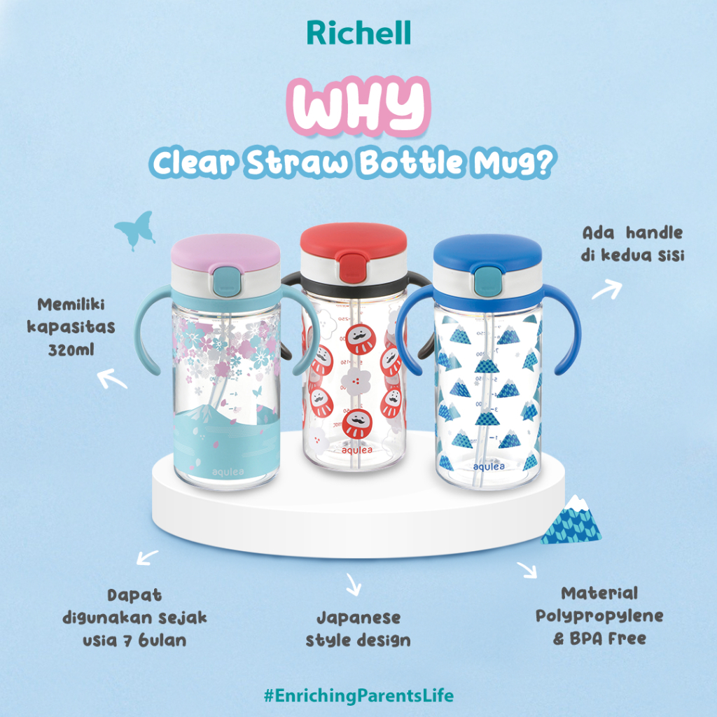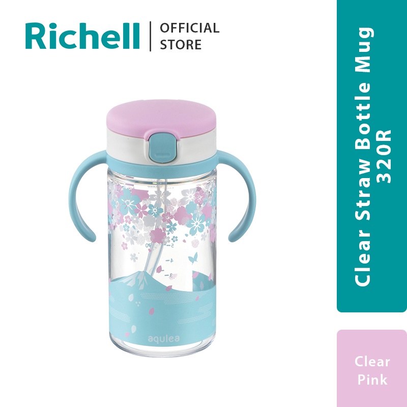 RICHELL - CLEAR STRAW BOTTLE MUG R CLEAR PINK