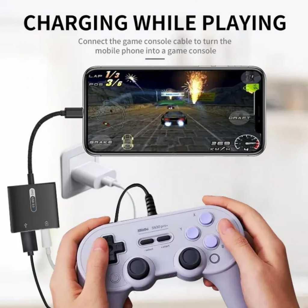 NEW ORIGINAL OTG Adapter USB 3.0 to Type C dan Lightning with 60W Charging 2 in 1 for Soundcard PC Phone Console