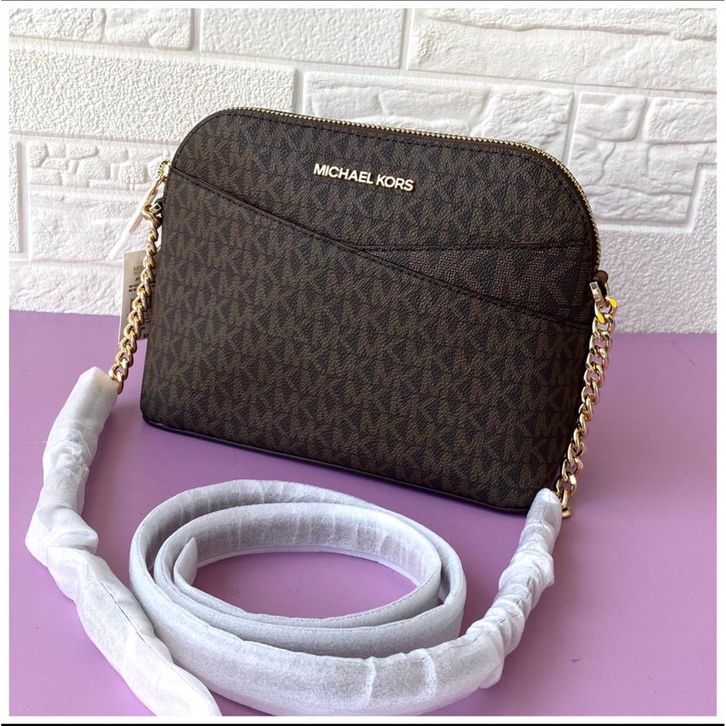 Tas Wanita Branded Cantik MK Jet Set Travel Medium Dome Crossbody Bag 21 x 17 CM 100. Original
