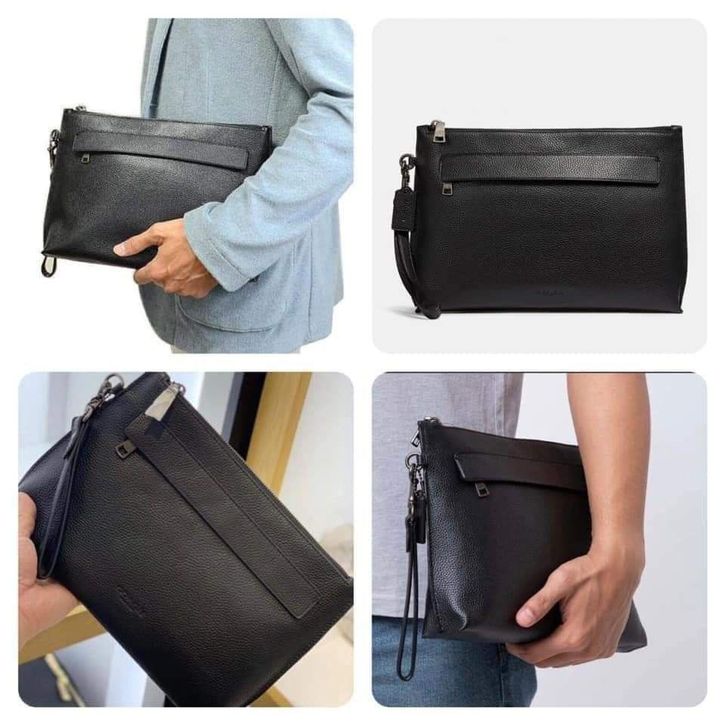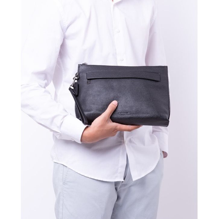 Clutch Pria Branded Coach Men Carryall Pouch Pebbled Leather 100. Original