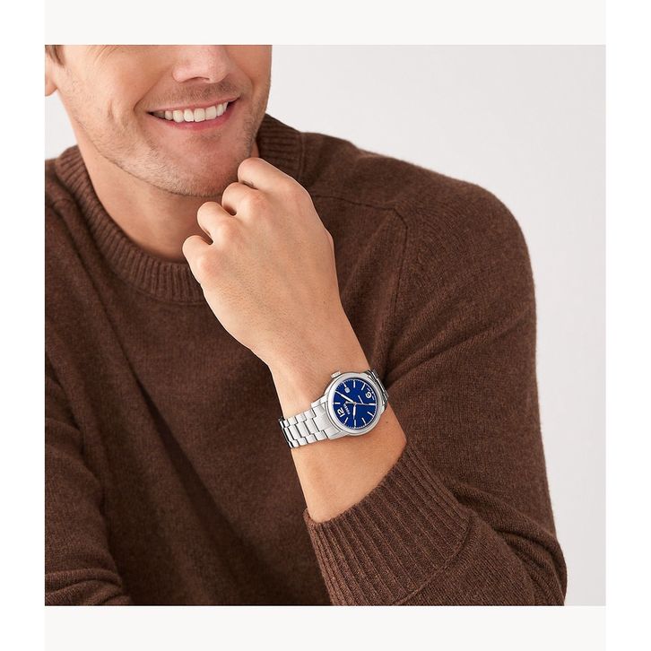 Fossil Heritage Automatic Blue Dial Stainless Steel Jam Pria - ME3244
