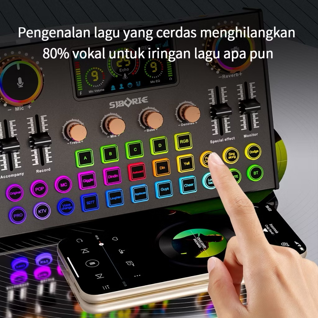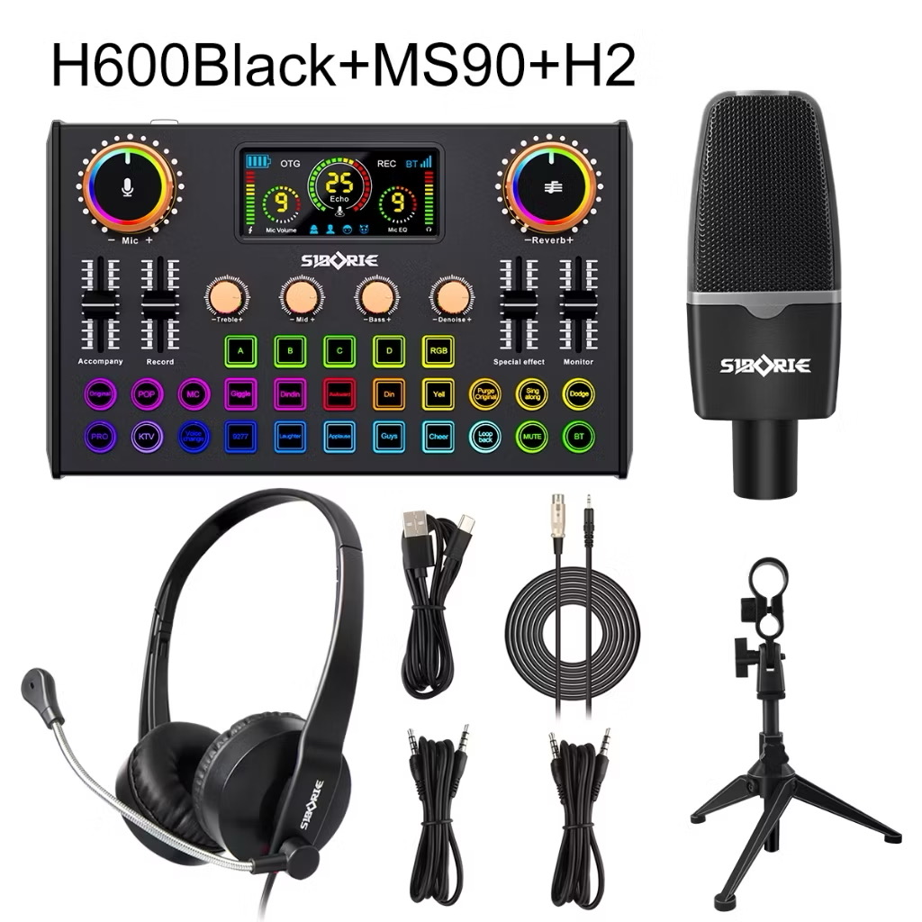 Siborie H600+MS90+H2 Paket Lengkap Live Soundcard Mic Headphone 3 in 1 Karaoke For Streaming Langsung
