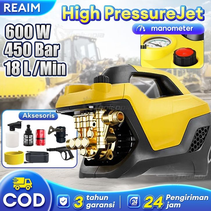 Reaim Alat Steam Cuci Motor 600W 450Bar Mobil Jet Cleaner Mesin Cuci Mobil Motor High Pressure Washer Alat Cuci Mobil