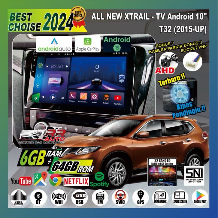 Xtrail T32 2015 up | Ram 6+64gb Headunit Android OS 13 ,Wifi,Voice Command,Android Auto,DSP 32band EQ( bonus kamera &Xtr