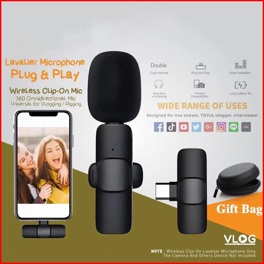 Mayy Id 2 Mic Mikrofon Clip On Nirkabel Wireless Berkendara Gratis Pasang Dan Mainkan Lavalier Mic Portabel Audio Video