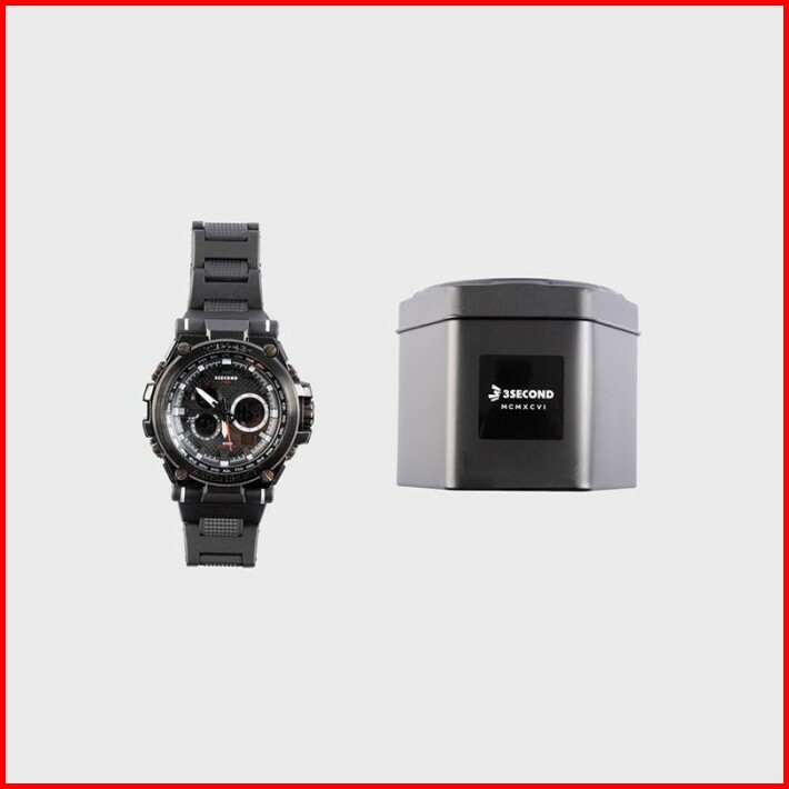 3second Jam Tangan Analog Pria Multifungsi Quartz Hitam 360123