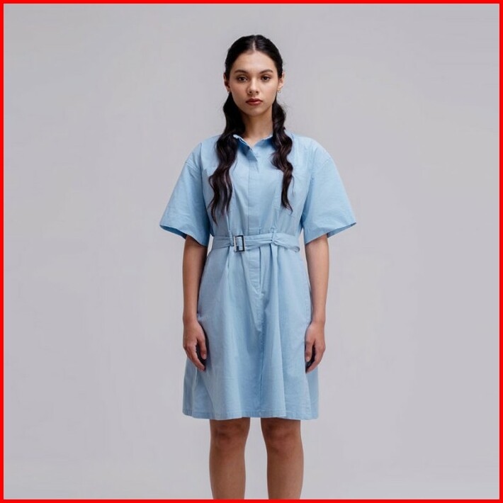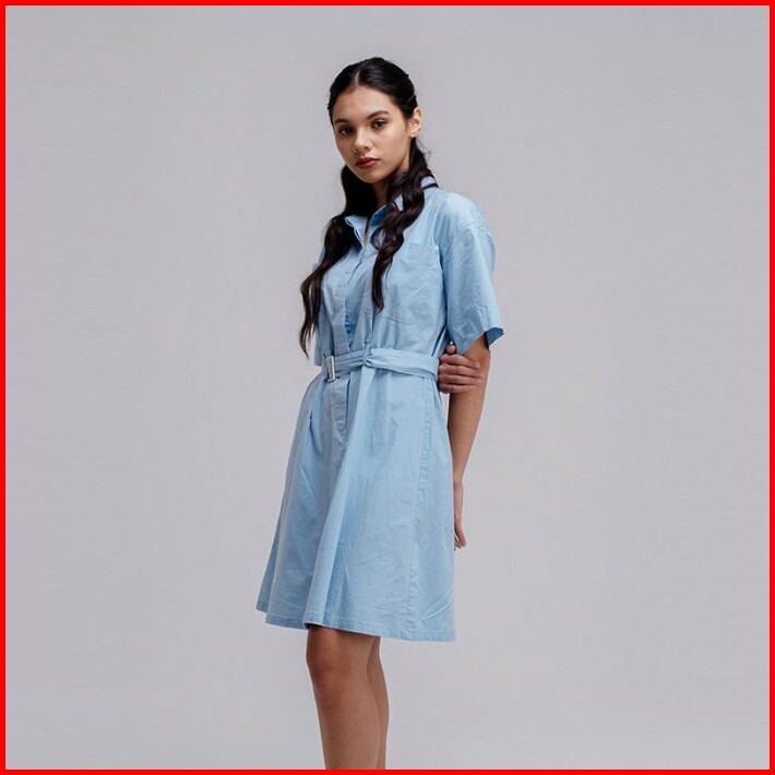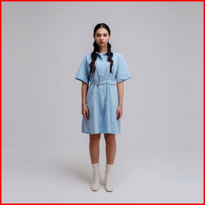 Famo Kemeja Dress With Belt Long Shirt Wanita Light Blue
