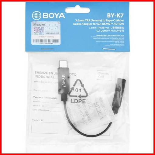 Boya By-k7 Adapter Cable 3.5mm Trs To Type-c For Dji Osmo Action Cam
