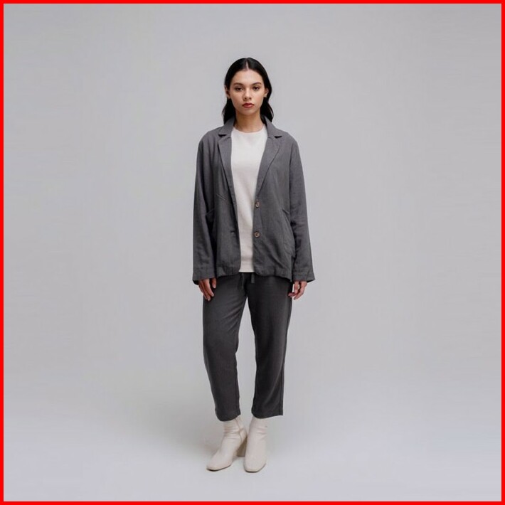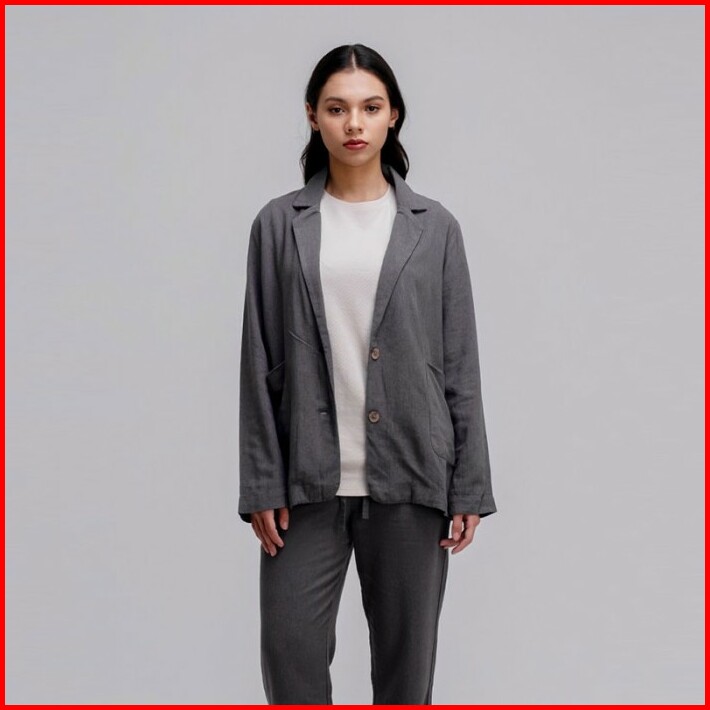 Famo Blazer Linen Rayon With Pockets Outer Abu Abu