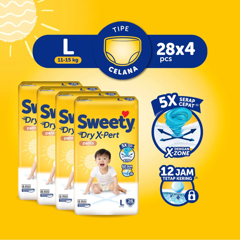 GRATIS ONGKIR Pampers Sweety Bronze Pants Dry Xpert Pants L 28s X 4 Ball