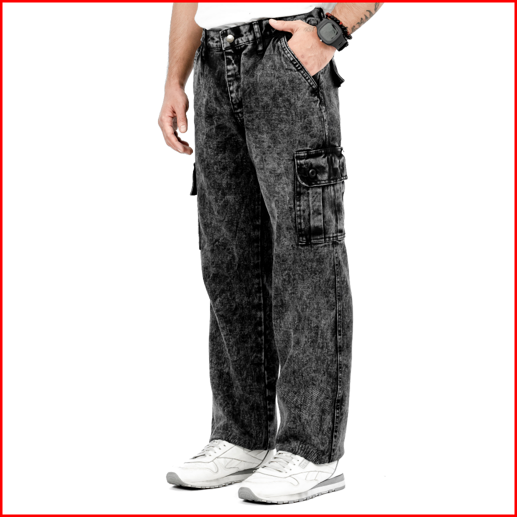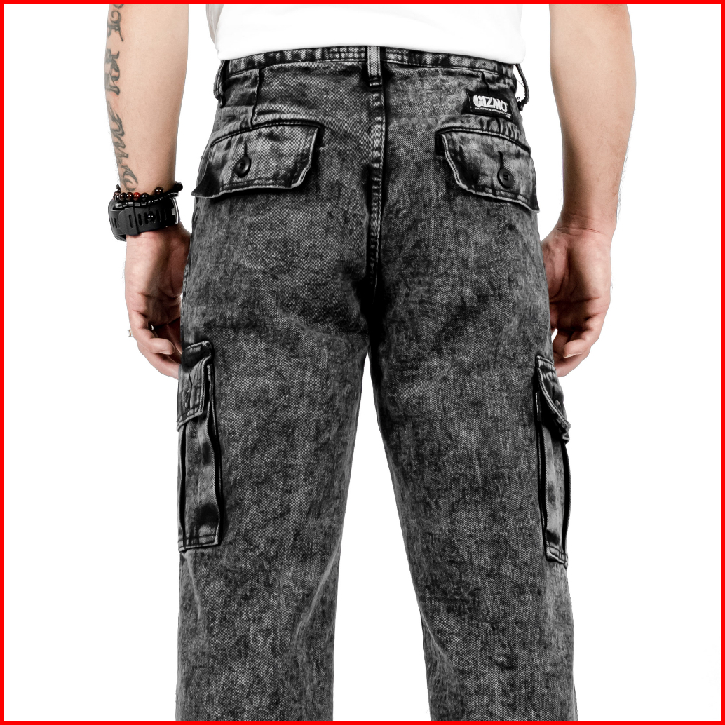 Gizmo Celana Cargo Jeans Pria Loose Fit Reguler Gombrong Skena Cargo Pants Jeans Reguler Standard Denim Washed Black San