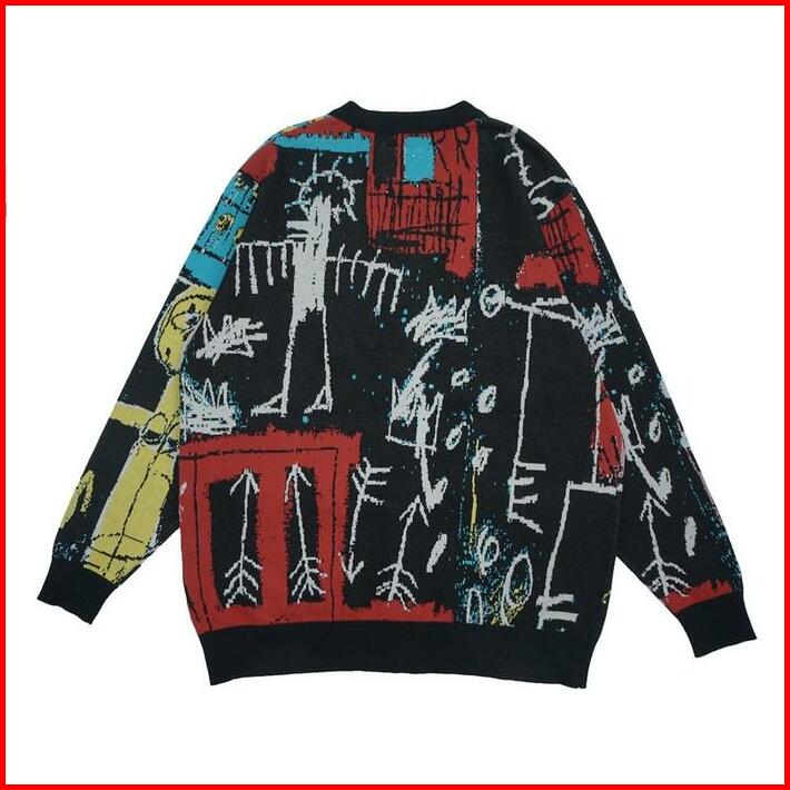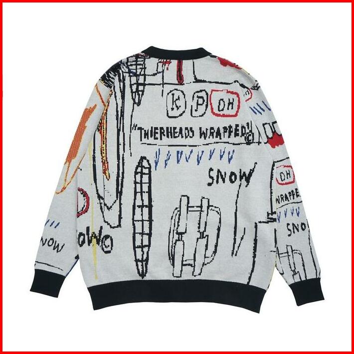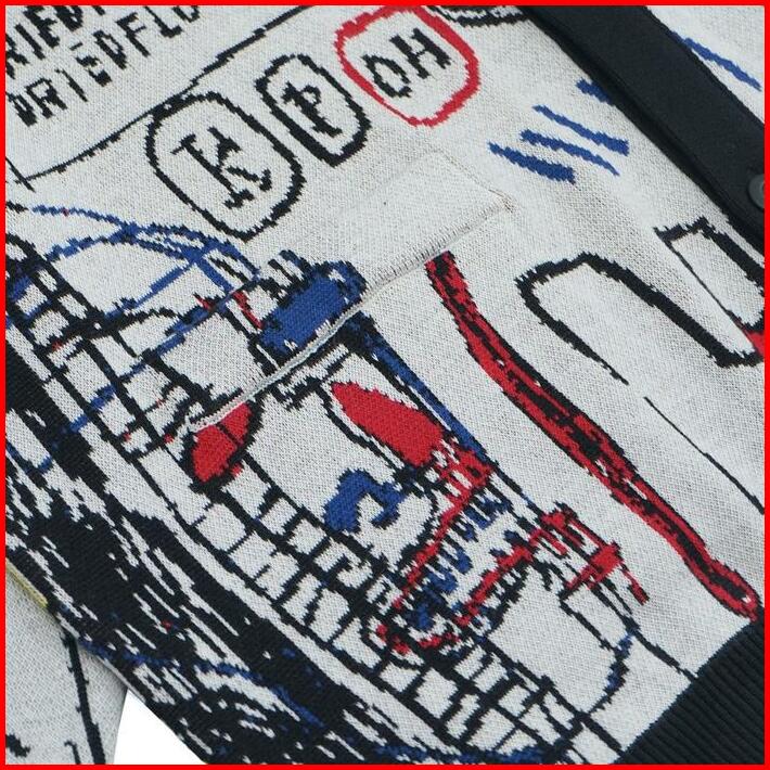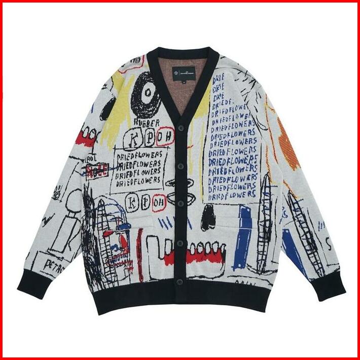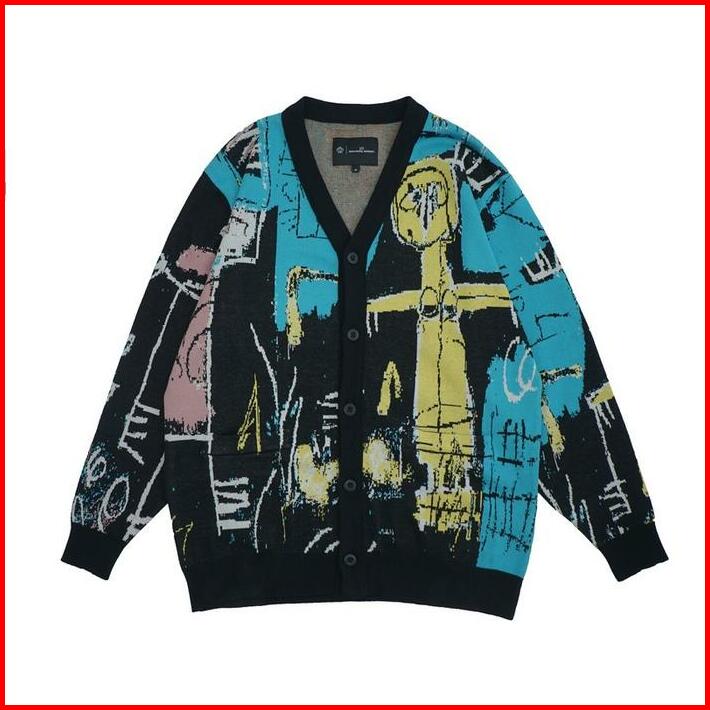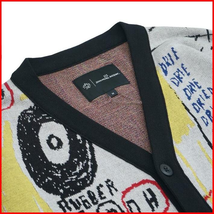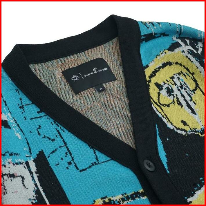 Three2nd X Basquiat Cardigan Rajut Pria Katun 010823 Casual Panjang Knitwear
