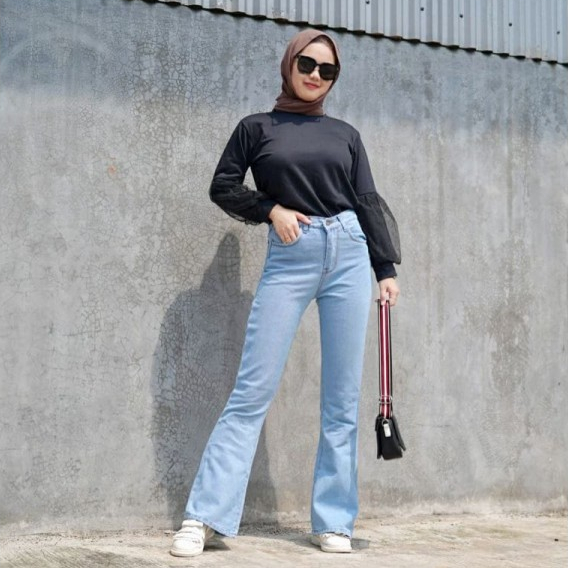 (Gratis Ongkir) Celana Cutbray Jeans Wanita Highwaist Loose