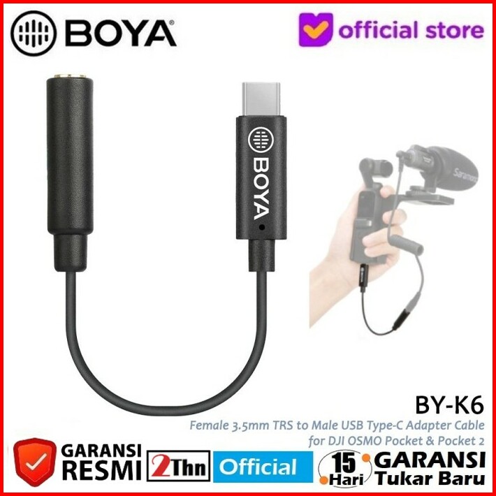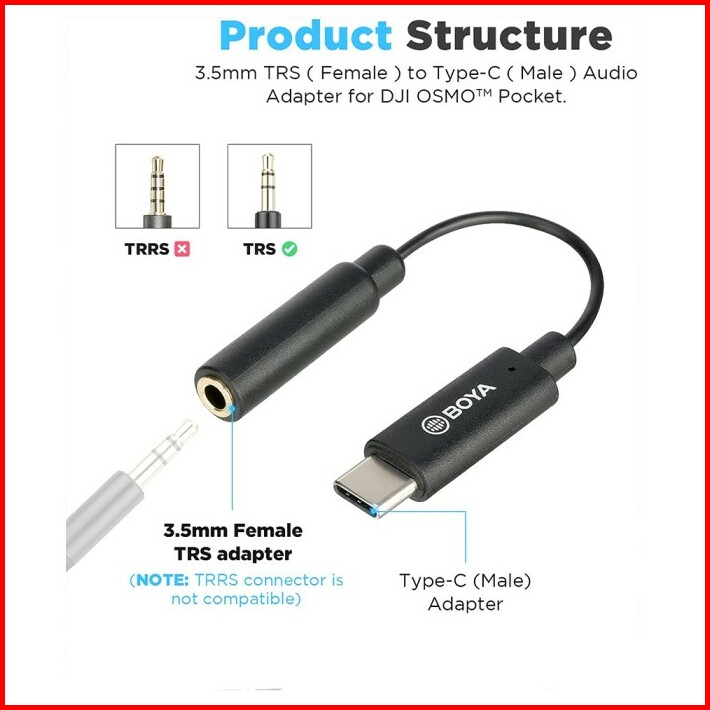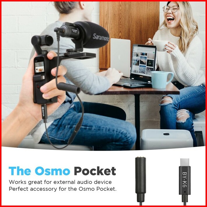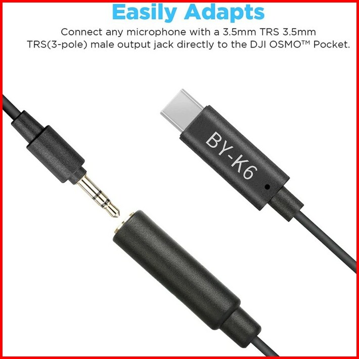 Boya By-k6 Adapter Cable 3.5mm Trs To Usb Type-c For Dji Osmo Pocket