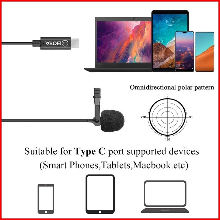 Boya By-m3 Clip On Mic Microphone With Usb Type C Connector