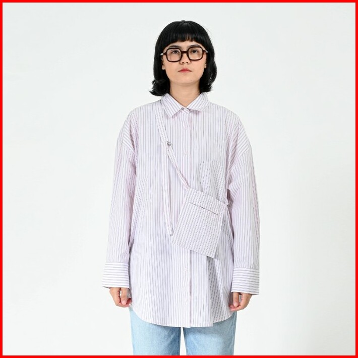 Greenlight Kemeja Lengan Panjang With Belt Bag Stripped Wanita