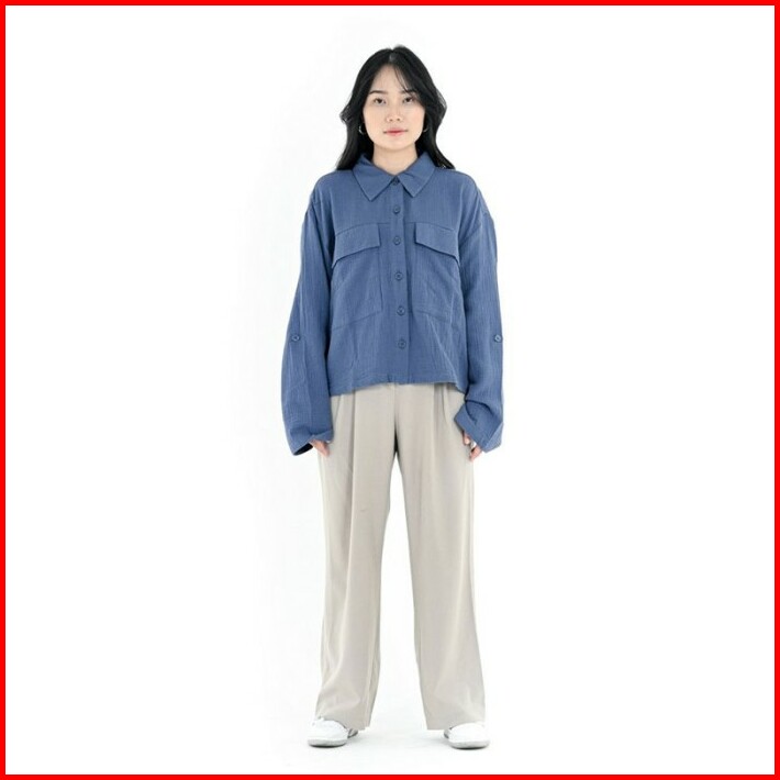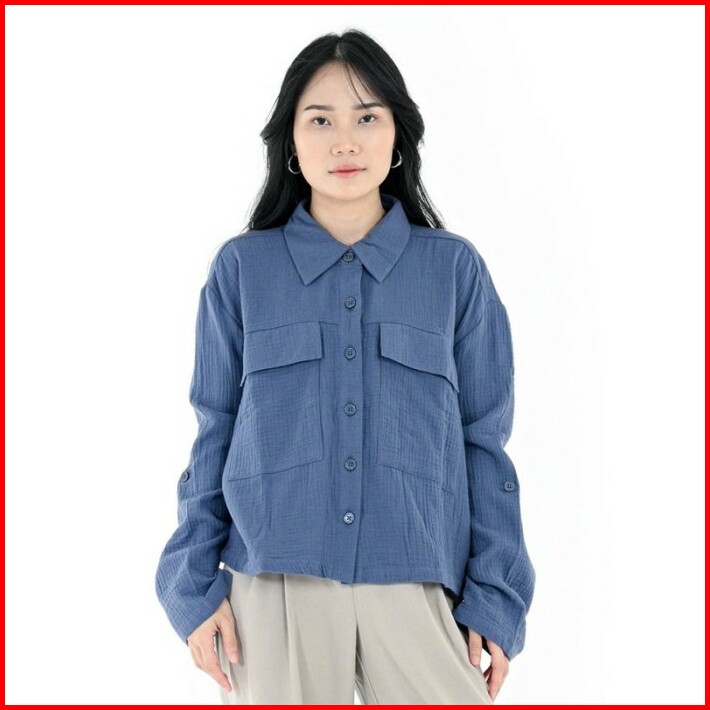 3second Kemeja Crop Top Wanita With Adjuster Sleeve