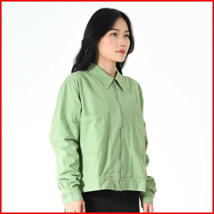 Greenlight Boxy Jaket Wanita Katun Straight Collar With Pockets