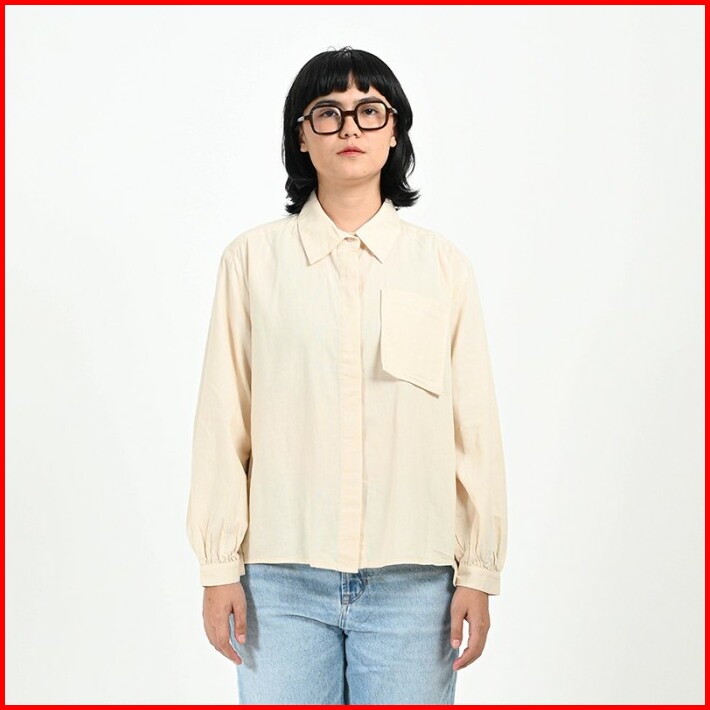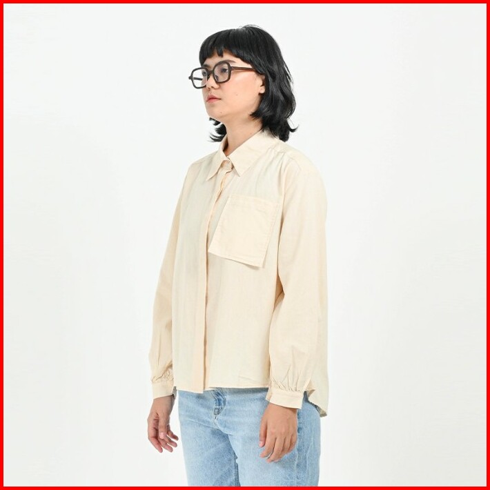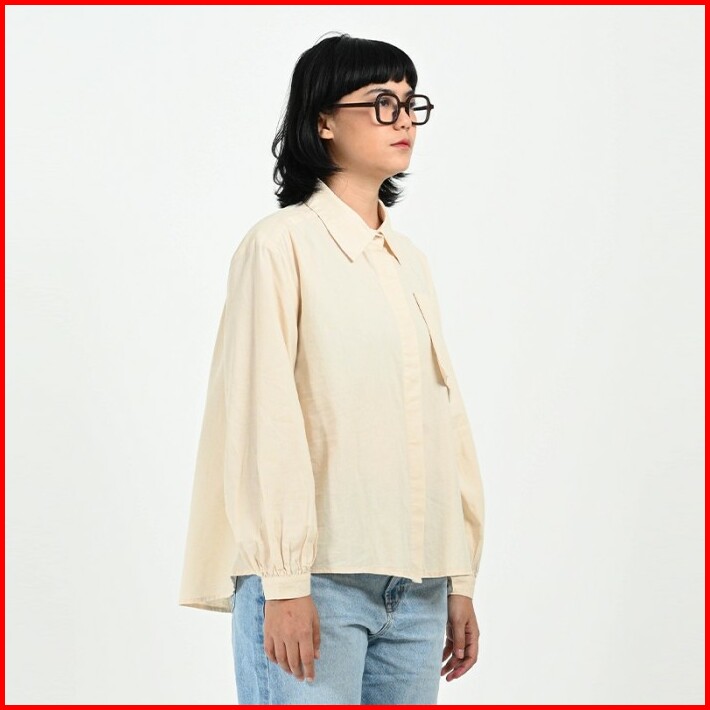 Greenlight Basic Blouse Wanita Katun Linen Plain Shirt Formal
