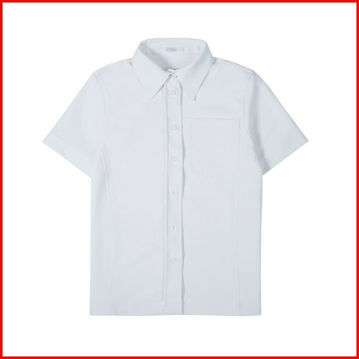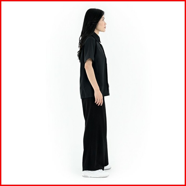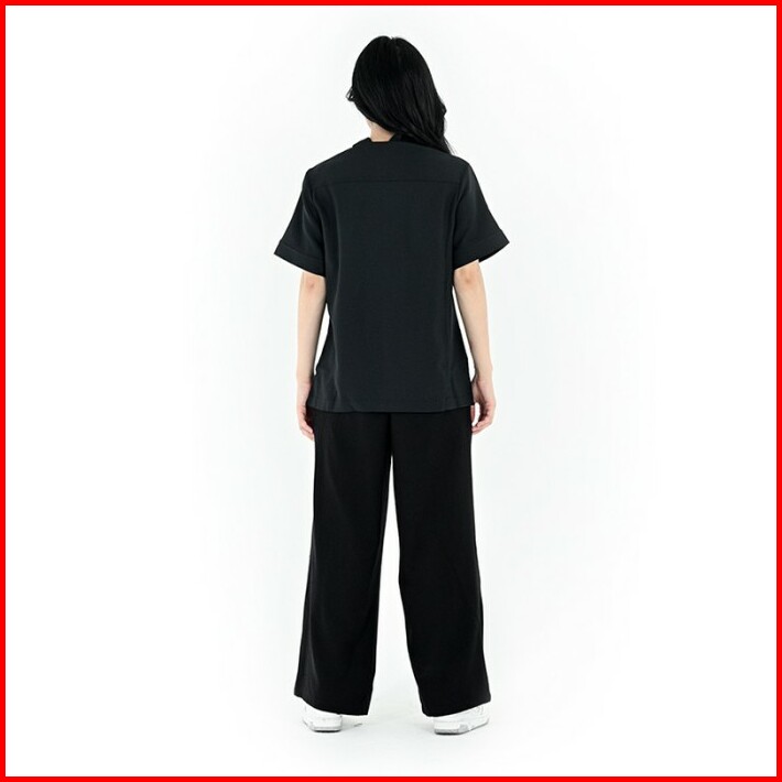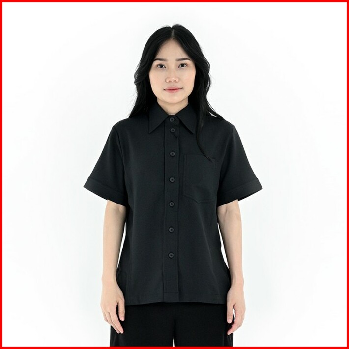 Famo Kemeja Wanita Lengan Pendek Polos Kerah Berdiri Twill C010423