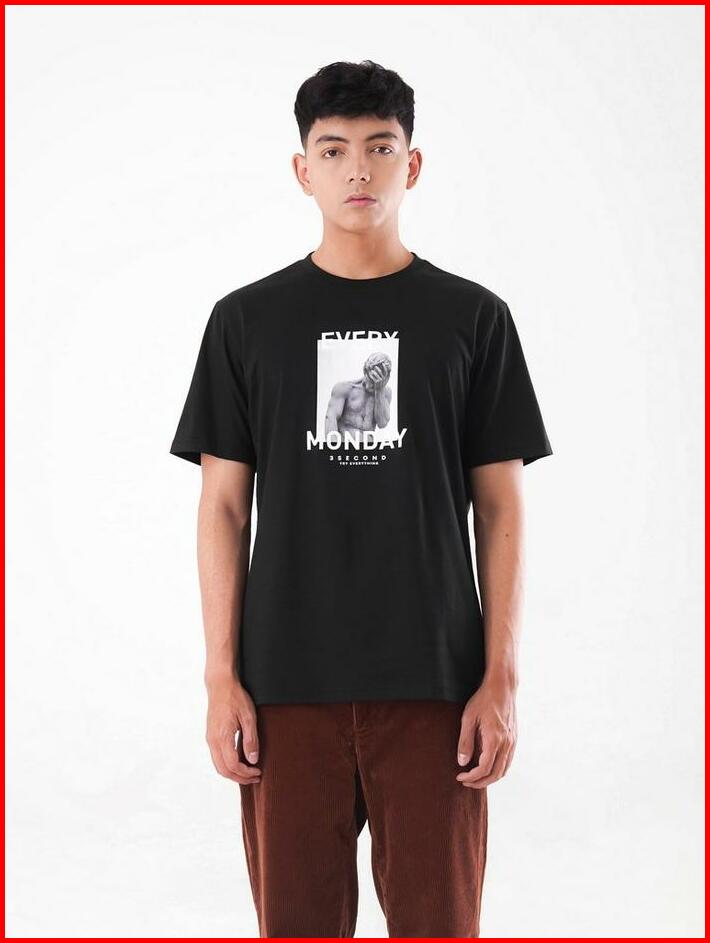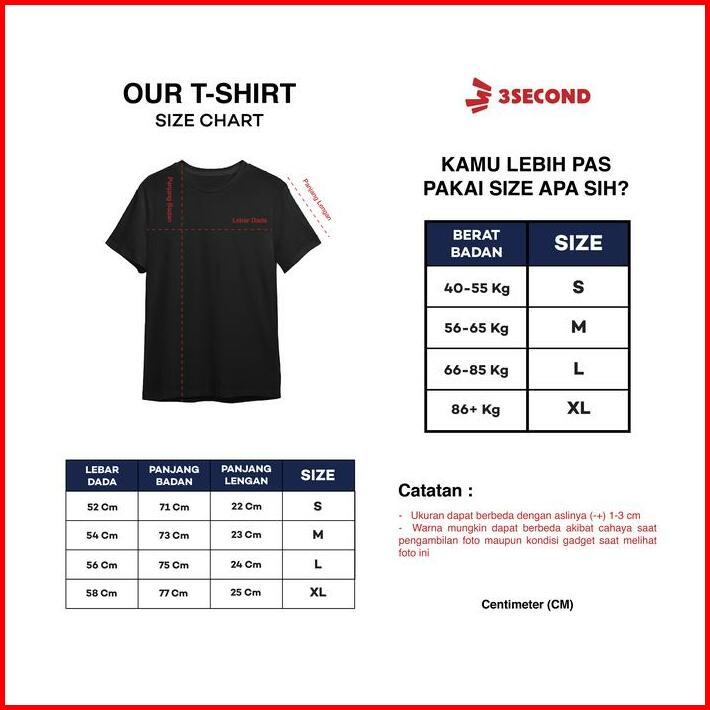 3second Kaos Pria Lengan Pendek Katun Regular Fit Ol-600723 T-shirt Casual Basic Sablon