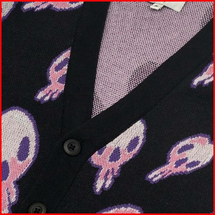 3second X Muklay Cardigan Pria Rajut Skull Kardigan C011023 Katun Panjang Knitwear