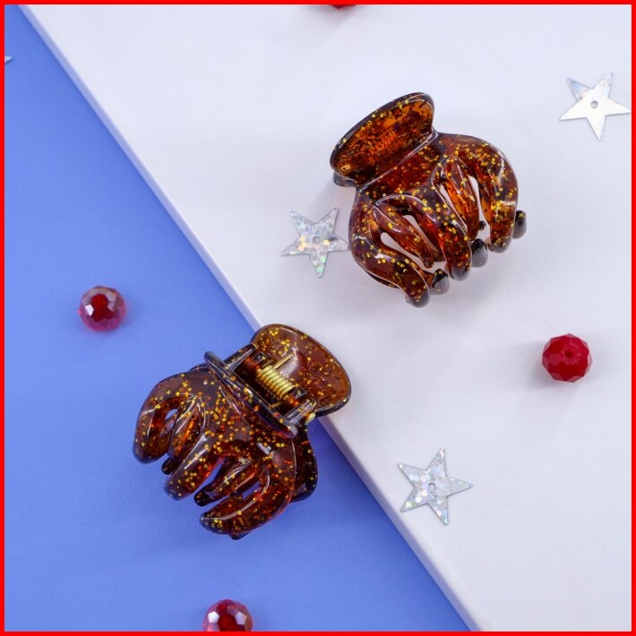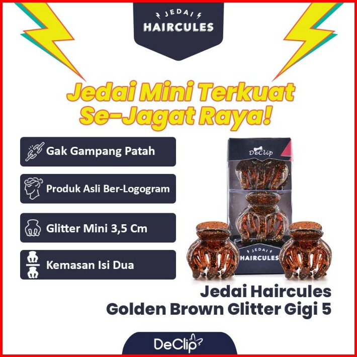 Declip Jedai Haircules Gigi 5 Ukuran 3 5 Cm Warna Golden Brown Glitter