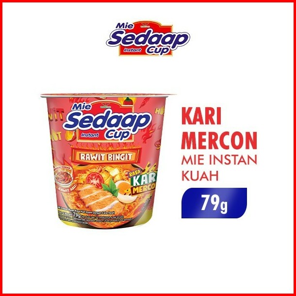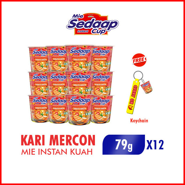 Sedaap Cup Mie Kari Mercon Cabe Rawit Asli 79 Gr X 12 Pcs Free Keychain