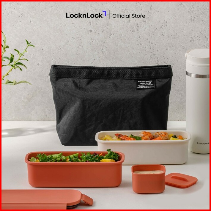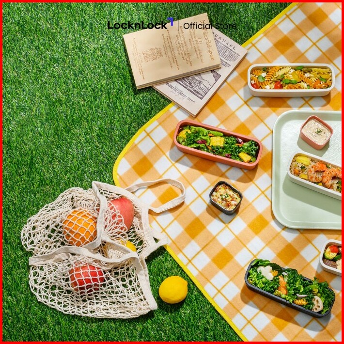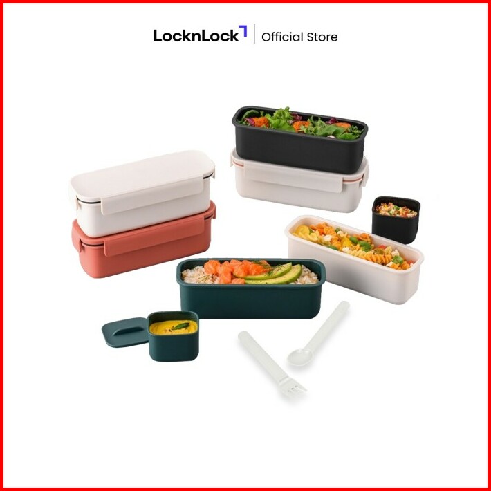 Locknlock Kotak Makan Slim Lunch Box Rectangular With Divider 440ml 2p