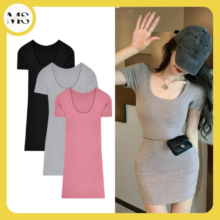 TERMURAH *Miyeon* 432 Basic Mini Dress Polos Sexy Gaun Korea Style Fashion Baju Ketat "