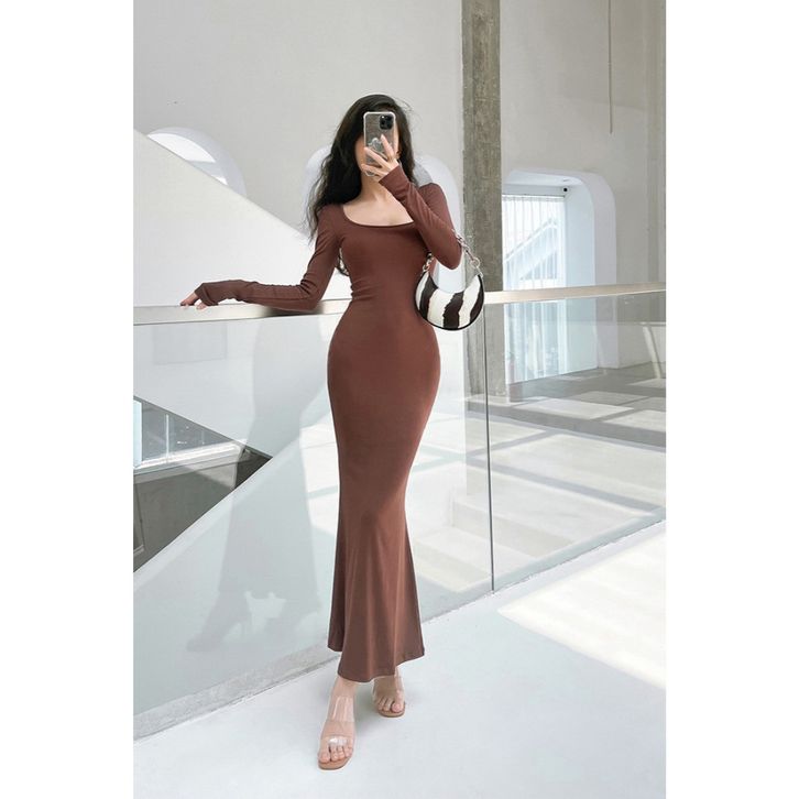 DISKON ! CLOVA DR457 Dress Panjang Bodycon Korean Style Long slevee Body Suit "