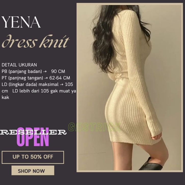 DISKON ! Yena Knit Dress V Neck - Korean bodycon elegant dress #GESTRICK "