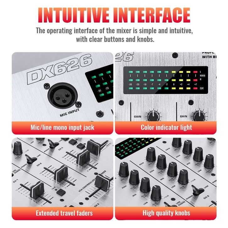 NEW BAXS DX626 DJ Mixer DJ untuk Pemula/Expert - 3 Channel, BPM Counter, Dual Port Headphone