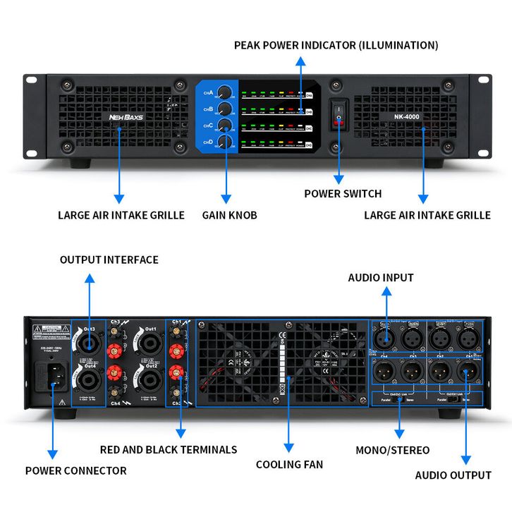 NEW BAXS Power amplifier 4 saluran murah amplifier digital profesional murah NK-2000 / NK-4000