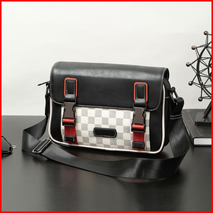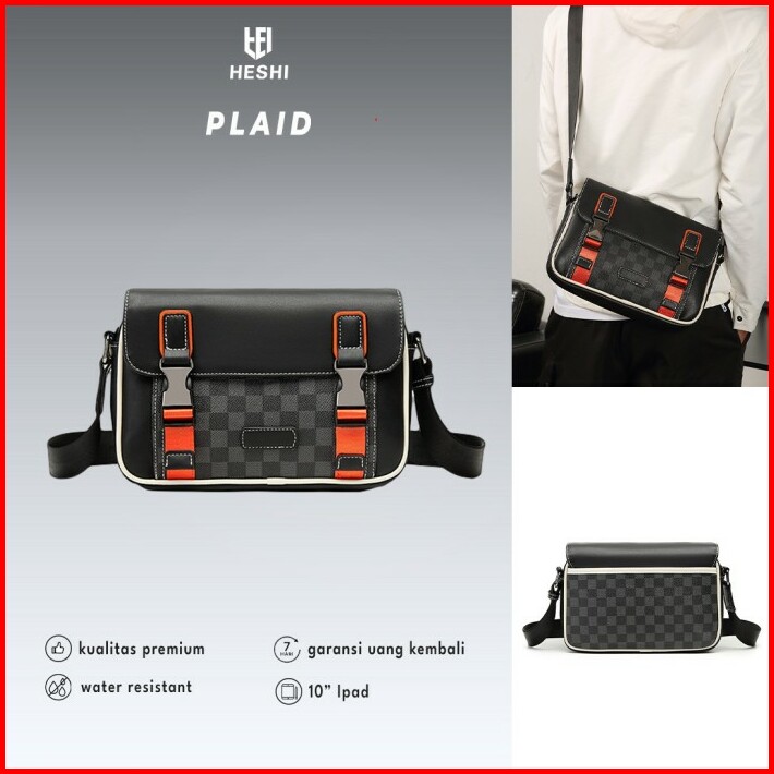 Tas Selempang Pria Messenger Bag Checker Klasik