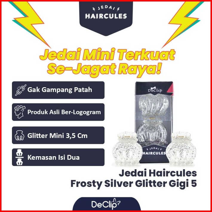 Declip Jedai Haircules Gigi 5 Ukuran 3 5 Cm Warna Frosty Silver Glitte