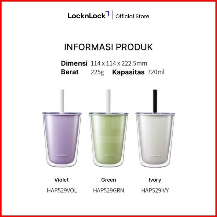 Locknlock Botol Minum Double Wall Cold Cup With Boba Straw 720ml